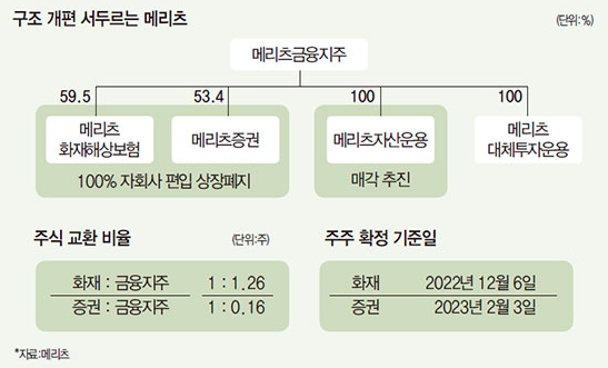 메리츠 금융 지주가 화재, 증권을 완전 자회사로 만드는 지배구조 개편안을 발표하였다.