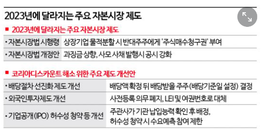 마지막으로는 소액주주 보호 움직임이다. 연말 금융투자 소득세가 2년 유예되었고 최근에는 배당관련 제도를 손질하겠다는 뉴스가 나왔다. 미국시장에 비해서는 여전히 갈길이 멀지만 과거에는 검토도 되지 않았던 내용이 점점 공론화 되고 있다는 점에서 고무적이다. 한걸음 나아가지 못하면 앞으로 나아갈 수 없다. 멀리 가야하지만 작은 걸음부터 떼는 것이 중요하다. 개인적으로는 M&A시 대주주 지분과 같은 가격에 주식 매수 청구권을 행사할 수 있는 제도 도입이 가장 시급하다. 이 말도 안되는 법 때문에 30% 지분만 비싼 가격에 거래되고, 사업을 인수하는 것이 아니라 인수기업의 재산에만 관심을 갖고 최대한 빨아먹고 버리는 등의 악질적인 행위가 공공연히 진행되고 있다. 전세계 어디에도 없는 이 법은 반드시 수정되야 한다.