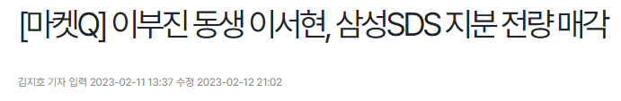 상장당시부터 증권가에서는 SDS가 오너일가의 지배구조 개편을 위한 자금줄로 활용될 것으로 봤다. 최대주주인 이재용 부회장과 이부진, 이서현 사장 등이 주요 주주이며 그룹의 주요 계열사가 아니기 때문에 지분을 팔거나 합병 등을 통해 부족한 삼성전자 지분 확보에 활용될 것으로 전망되었다 (당연히 높은 주가로..). 실제로 그런 움직임이 없지는 않았지만 삼성물산과 제일모직의 무리한 합병 등으로 인해 당초 시나리오에 변경이 생기면서 지배구조 개편에 수혜를 입을 것이란 기대가 사라져 버렸다. 또한 이건희 회장이 사망 후 막대한 상속세 납부를 위해 이부진, 이서현 사장이 SDS 지분을 대거 내다 팔면서 추가 물량이 나올 수 있다는 오버행 이슈가 주가의 발목을 잡고 있는 것이다.