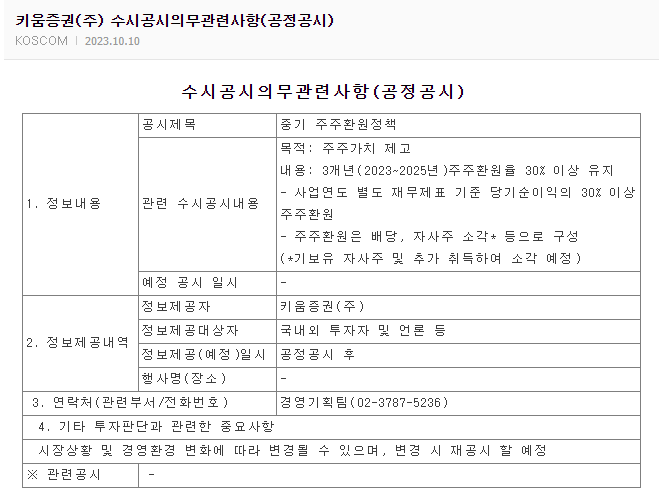 나는 먼저 주주환원 발표와 영풍제지 미수금 사건의 시간차가 크지 않은 것에서 가장 큰 의문을 가지고 있다. 딱 10일 차이다. 과연 키움증권이 이번 사태를 전혀 몰랐던건지 궁금하다. 만약 어떤 식으로든 인지한 상태에서 주가를 먼저 띄우기 위해 주주환원을 발표하고 10일 뒤 악재를 발표했다면 이것은 범죄행위다.