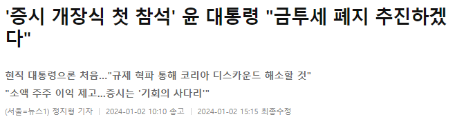 윤석열 대통령이 헌정사상 처음으로 새해 첫날 거래소를 방문해서 의미있는 이야기를 했다.