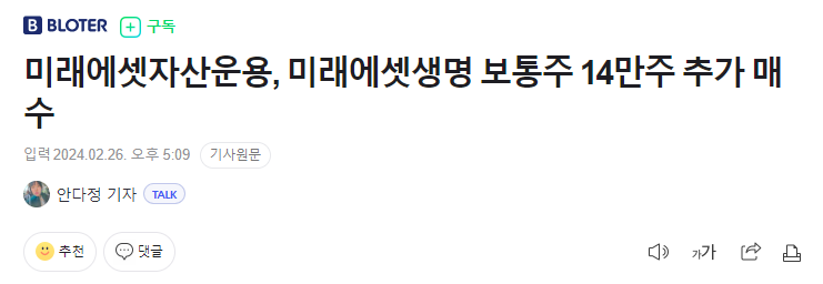 그런데 작년부터 주가가 낮을때마다 계열사에서 이회사 주식을 추가로 매입하고 있다. 최근에는 지난 2월말 미래에셋자산운용이 보통주 14만주를 추가 매수하였다. 지난 1년간 계열사를 총동원해서 계속 지분을 늘려가고 있다. 보유지분은 늘리면서 동시에 이익은 내부에 쌓고 있는 모습이 왠지 100% 완전자회사로의 편입을 노린 수순으로 의심된다.