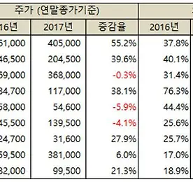 [종목분석 6] 삼성물산 : 진정한 자산주 -> 재평가 기대 삼성물산 보유 지분가치 : 약 38조 + α 삼성물산은 삼성전자, 삼성생명, 삼성SDS의 2대 주주이자, 삼성바이오로직스의 1대주주이다. 어제(1/8) 종가 기준으로 상장된 자회사와 자사주 등을 보함한 보유 주식의 가치는 38조가 넘는다. (아래표 참조) 그럼에도 불구하고 삼성물산의 시가총액은 약 24조원 정도이다. 사실 계열사 주식의 가치를 주가에 어느 정도 반영하는게 타당하다는 법칙은 없다. 시장에서 할인되어 거래 되는 것이 그냥 정답이라고 보는게 맞을 것 같다. 삼성물산이 연간 순이익을 6,000억 정도로 계산하면 PER 10 기준으로 6조원 정도가 적정 시총이니, 나머지 시총은 보유 주식가치라고 보면 될 것 같다. 약 50% 정도 할인되어 반영되고 있는 것으로 보인다. 그럼 결국 삼성물산 주가가 .. 더보기 [종목분석 5] 2017년 코스피 업종별 수익율 분석 (2편) 2017년 히든 챔피언 - 정유/화학업종 2017년 코스피 지수를 견인한 또 하나의 업종을 꼽으라면 단연 정유/화학업종이다. 유가가 산유국들의 감산에 따라 안정적인 가격을 유지하였고, 글로벌 경기 호전에 따라 수요가 견고하게 증가하면서 경기확장의 수혜를 그대로 받은 업종이라고 할 수 있다. 그럼 17년도 수익율과 외국인의 전략은 어땠을까? 전체적으로 LG화학, SK이노베이션, S-oil 등이 준수한 성적을 거둔 반면 외국인 투자자가 이탈한 한국타이어, 효성 등은 주가가 하락하였다. 금호석유화학의 경우 외국인이 비중을 지속확대중이어서 추가 상승이 유력해 보인다.정유/화학업종의 경우에도 대체로 외국인들의 수급이 가격 등락에 큰 역할을 하였다는 점을 부인하기 어렵다. 계열사에 따른 주가 희비 - 재벌 지주사 .. 더보기 [종목분석 4] 2017년 코스피 업종별 수익율 분석 (1편) 2017년 업종별 수익율과 외국인 비율 상관성 분석 한국의 주식시장은 흔히 외국인의 수급에 의해 수익율이 결정된다는 말이 있다. 이말은 불행히도 정확한 말이다. 특히 시가총액 상위의 우량 종목은 더더욱 외국인 비중이 높다. 그 이유는 여러 가지가 있을 수 있지만 일단 한 번 사면 잘 팔지 않는 외국인의 장기투자 습성에 있지 않나 싶다. 한국의 경제성장 과실을 외국인이 가지고 간다고 탓만 하지 말고, 근본적으로 국민의 부를 증식하기 위해 우리는 어떤 방법을 택할 것인지 진지한 고민이 필요한 시점이 아닐까 싶다. 다시 돌아와서 그렇다면 올해 코스피 상위 종목들의 수익율과 외국인 투자자의 움직임은 어떤 상관관계를 가지고 있을까? 정말 외국인이 산 종목이 올랐을까? 그렇다면 내년에는 어떻게 될까? 2017년의 .. 더보기 이전 1 ··· 69 70 71 72 73 다음