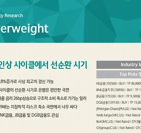 KB금융 썸네일형 리스트형 [종목분석 24] 은행업종 투자매력도 점검 최근 은행업종 고점대비 20%하락 최근 코스피 지수가 지지부진한 가운데 은행업종의 하락이 단연 눈에 띈다. 주요 금융지주 기준 실적이 전년비 10~15% 증가할 것으로 예상됨에도 불구하고 코스피보다 더 높은 하락율을 기록하고 있다. 신문이나 방송의 뉴스 등을 통해 원인을 분석해 보면 한국은행의 금리인상 지연, 부동산 경기 위축, 각종 채용비리, 이탈리아발 유럽 금융위기 재연 우려 등을 주요 하락요인으로 꼽고 있다. 그러나 이같은 분석이 틀린 것은 아니지만 그냥 내리니까 찾은 핑계에 불과하다. 기본적으로 외국인이 MSCI 신흥국 지수에서 중국 A주를 편입하기 위해 코스피를 매도함에 따른 조정에 약간의 노이즈가 더해져 조금 더 빠진 것으로 본다. 실제로 국내 5대 은행의 외국인 비율은 전반적으로 크게 줄지 .. 더보기 15. 4월 2일 주목할만한 뉴스 : 은행업종 분석 리포트 은행업종 : 아무리 봐도 너무 싸다. 최근 은행업종의 약세가 두드러진다. 미국과 한국의 금리인상 등으로 전년도에 이어 올해도 실적 개선세가 유지될 것으로 예측되고 있고 또한 배당 수익율도 3% 가까이 되는데도 불구하고 코스피 지수보다 더 성적이 좋지 않다. 아마도 시장전체가 약세였던 점과 한국의 금리인상이 예상보다 더딜것으로 예측되는 점 그리고 정부의 강력한 주택대출규제 등이 복합적으로 작용했던 것으로 보인다. 하지만 역사적으로 금리인상기에 은행업종이 나빳던 적은 없다. 우리나라 기준금리는 여전히 1.5%수준이라는 점을 기억하기 바란다. 그래서 오늘은 다른 뉴스보다는 하나금융투자에서 은행업종에 대해 쓴 리포트를 하나 소개할까 한다. 아래내용은 핵심적인 부분만 모아놓은 것이다. 한번 읽어보기 바란다. 더보기 [종목분석 14] 신한금융지주 : 기대되는 해외사업과 탄탄한 실적 최근 주가하락의 원인 : 4분기 실적부진이 아닌 배당동결때문 신한금융지주는 KB금융과 함께 국내 금융지주회사의 양대산맥이다. 작년 미국 및 국내 기준금리 인상으로 인한 대출금리 인상으로 이익이 대폭증가하여 지난 1월 22일 52주 신고가(53,400원)를 기록하기도였으나, 그 이후 시장투자심리 악화 등의 영향으로 약 15%정도 주가가 하락하였다. KB금융지주나 하나금융지주에 비하여 낙폭이 조금 더 큰 관계로 시장에서는 4분기 실적부진 등을 원인으로 꼽고 있으나 그것보다는 배당이 작년에 비해 늘지 않은 것에 대한 실망매물이 더 큰 영향을 미치고 있는 것으로 보인다. KB금융, 하나금융, 우리은행, 기업은행 등 대형 시중은행들은 실적증가에 따라 전년비 20~30% 배당금을 상향하였으나 유일하게 신한지주만이 .. 더보기 [종목분석 12] KODEX ETF로 투자하기 한종목을 찾기 어렵다면 ETF로 투자하기 주식투자를 결정할 때 가장 중요한 요소 중 하나는 어떤 업종에 투자할지를 결정하는 일일 것이다. 그 다음이 해당 업종에서 어떤 업체에 투자할 것인가를 정하는 것이다. 향후 금리상승 및 주식시장 활성화에 따라 금융관련 업종에 투자하고 싶지만 어떤 회사에 투자할지를 결정하지 못하겠다면 ETF가 대안이 될 수 있을 것이다. 개인적으로 은행, 보험, 증권 업종이 향후 유망하다고 생각하기 때문에 위의 3개 ETF에 대해 소개해보고자 한다. 1. KODEX 은행 금리상승의 가장 큰 수혜를 받는 은행업종에 투자하는 ETF이다. KB금융과 하나금융지주의 비중이 가장 크다. 나또한 2개 회사가 가장 매력적이라고 생각한다. 이 ETF를 사면 2개 회사에 모두 투자할 수 있다. 2... 더보기 03. 2월 9일 주목할만한 뉴스 : 은행업종 바겐세일 중 대형 금융지주사 실적 사상 최대치 현재 한국의 기준 금리는 1.5%이다. 향후 경기 회복세에 따라 기준금리는 점진적으로 인상될 가능성이 높다. 우리는 아직 중립금리 3%까지 1.5%나 남아있다. 부동산 경기는 꺾일 줄 모르고 상승하고 있다. 개인적으로 은행주는 향후 2년간 실적이 지속 상승할 것으로 보인다. 물론 실적개선 속도는 둔화될 수도 있지만 어쨋든 이익이 늘어날 것은 거의 확실하다. 금리가 2.5%에 이르는 시점까지는 마음편히 들고가도 되는게 금융주 아닌가 싶다. 현재 금융업종도 고점대비 10%이상 떨어진 상태다. 만약 여기서 2~3% 더 하락한다면 아주 매력적인 가격대에 접근한다고 생각한다. 다음 기사들을 참고해 보면 좋을 듯 싶다. KB금융, 하나금융, 신한지주, 우리은행, 기업은행 등 5대 .. 더보기 이전 1 다음